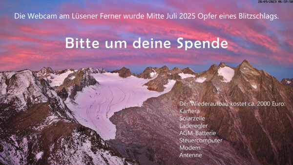 Die Webcam am Lüsener Ferner wurde Mitte Juli 2025 Opfer eines Blitzschlag. Eine Neuerrichtung ist geplant – doch dafür benötige ich Unterstützung. Die erste Kamera