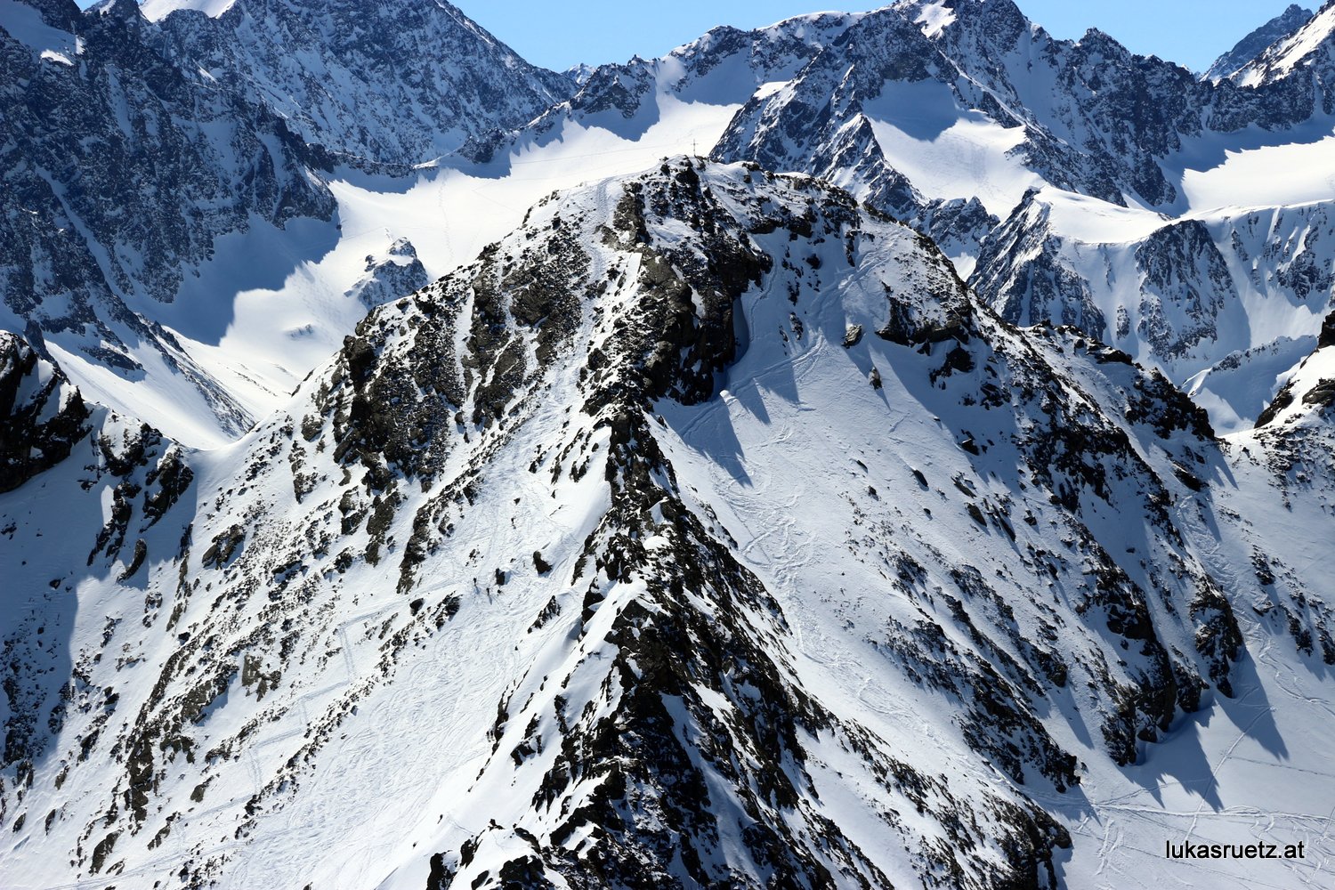 Jetzt spielt unsere Region ihre besten Karten aus: Die Absoluthöhe und vor allem auch die per Auto erreichbare Höhe am höchsten, auch im Winter befahrbaren, Pass Österreichs – Kühtai. Während es vor allem in den niedrig gelegenen, dafür aber im Hochwinter schneereichen Nordstauregionen bis fast ganz hinauf regnet und damit der an sich viele Schnee von den dortigen, niedrig gelegenen Ausgangspunkten zwischen 1200m und 1600m dahinrinnt, schneit es bei uns bis fast zu den Ausgangspunkten hinunter. Die Schmelze hält sich damit entweder in Grenzen oder es kommt sogar noch Schnee dazu. Zwischen 2200m – 3000m – wo sich bei uns der Hauptbereich des Skitourengeländes befindet – schneit und schneit und schneit es…