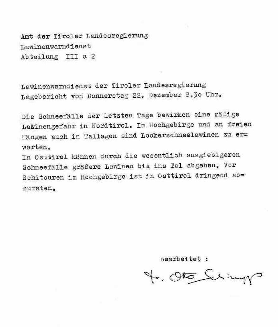 LR: Wie kam es eigentlich zum Lawinenwarndienst in Tirol? Meist gehen der Installation von Warneinrichtungen ja große Katastrophen voran?