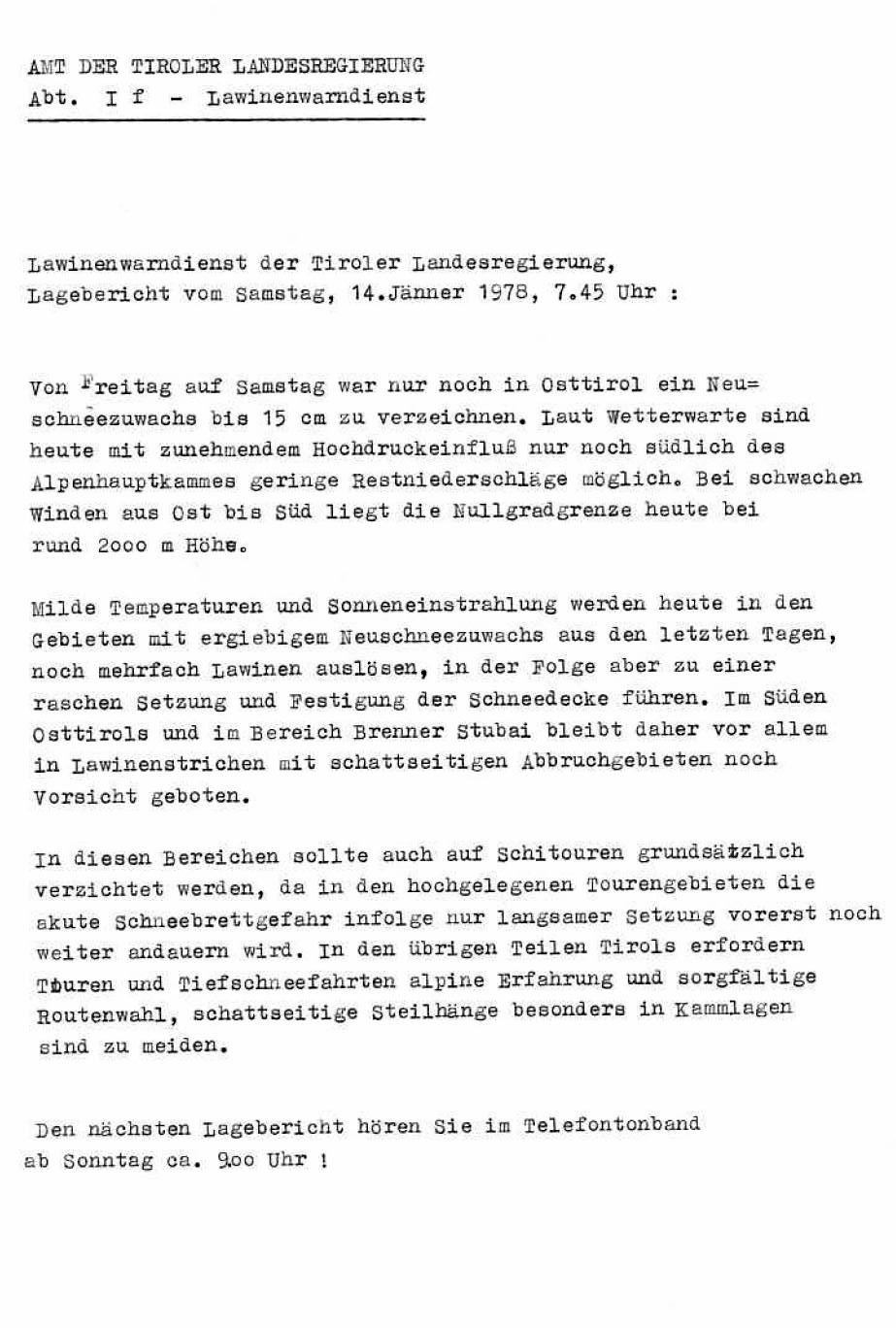 Die Entwicklung des Tiroler Lawinenlageberichts von 1960 bis heute