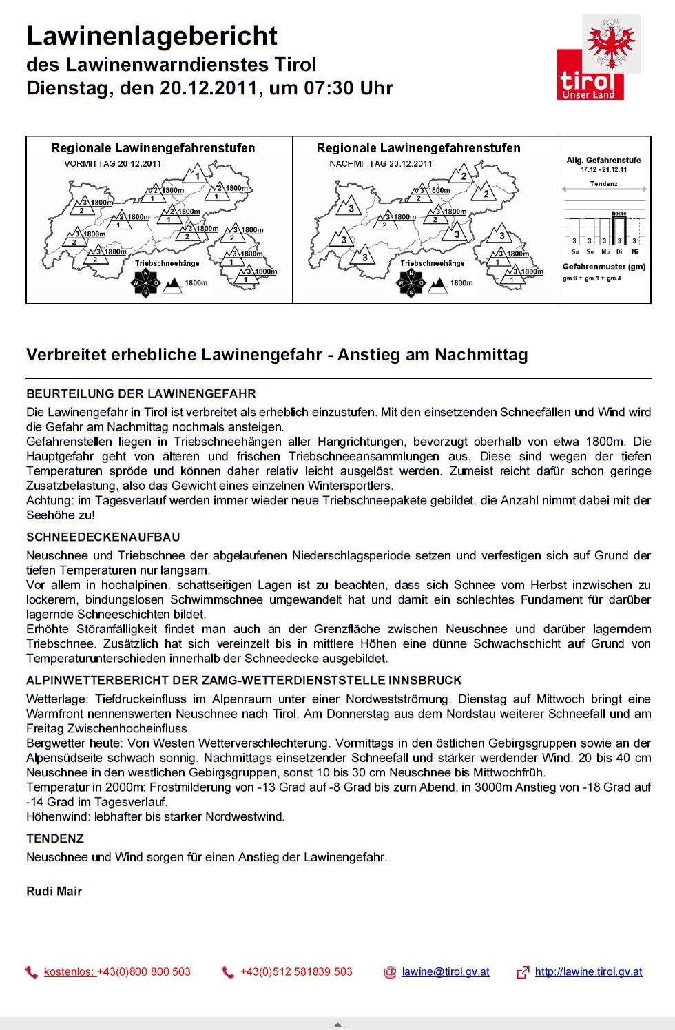 Rudi Mair vom LWD Tirol startet heuer in seinen 31. Winter als Lawinenprognostiker. Der auch im weniger schneeaffinen Teil der Gesellschaft durchaus bekannte und eloquente „Lawinör“ erzählt über die Entwicklung des Tiroler Lawinenwarndienstes, die größten Innovationen der letzten dreißig Jahre und ob er im Ruhestand noch einmal zu seinem beruflichen Ursprung in der Antarktis zurückkehren würde.