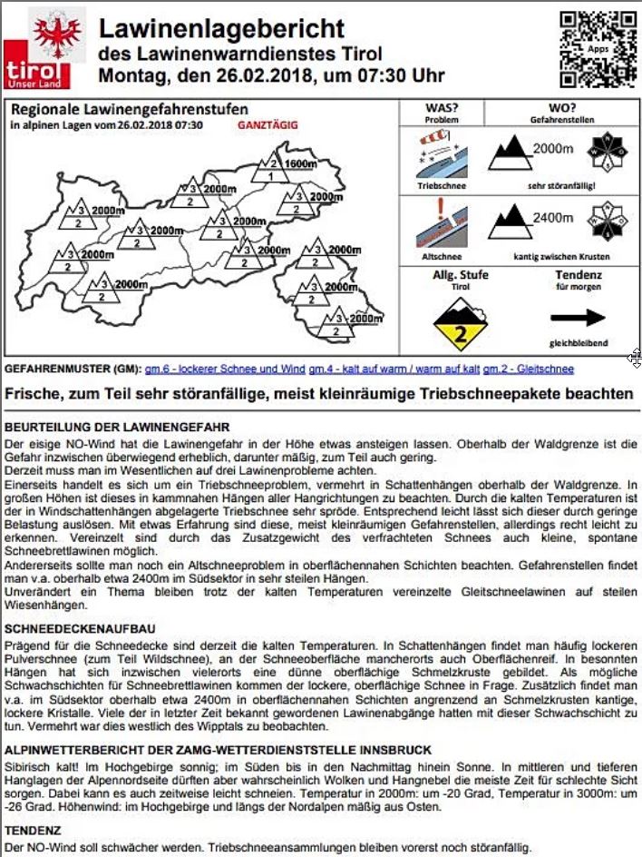 Eine 100%ige Vorhersage wird man bei Lawinen wahrscheinlich niemals erreichen, und auch eine exakte Einzelhangprognose wird es wohl so schnell nicht geben. Die Auflösung wird immer besser. Anfangs war Tirol auch eine einzige Warnregion. Mittlerweile besteht der Lawinenreport aus 29 kleinen Warnregionen die flexibel zusammengestellt werden, aber auch für sich alleine stehen können. Und für jede dieser Regionen gibt es täglich eine eigene Lawinenprognose.