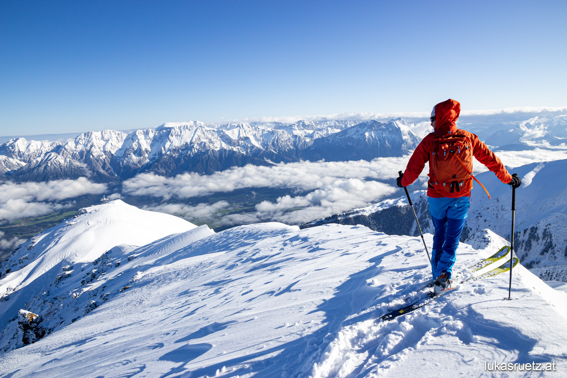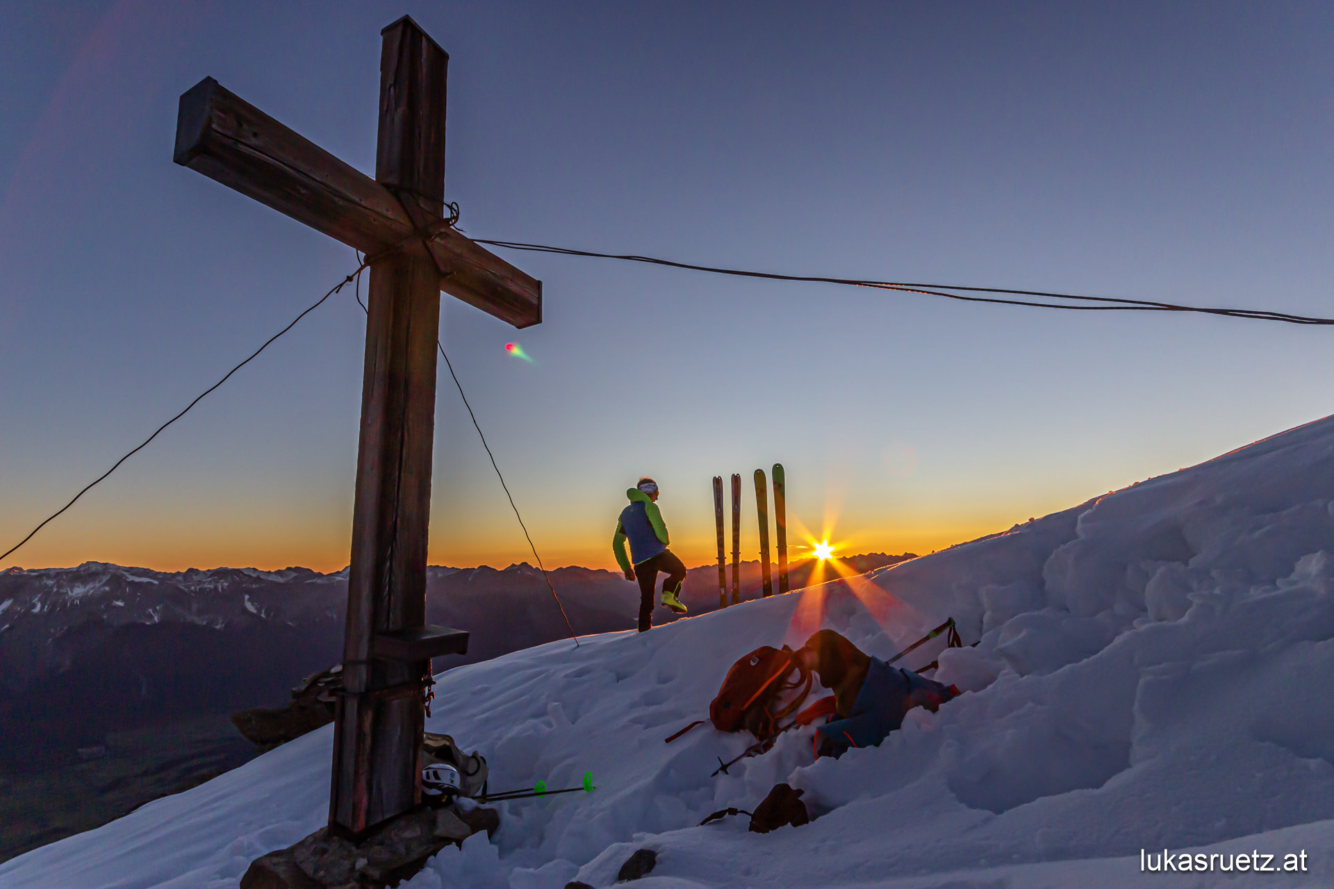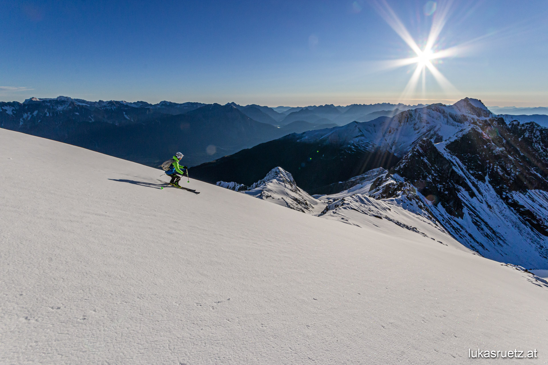 First and foremost, I go skitouring excessively. In summer paragliding, mountain running and mountaineering.