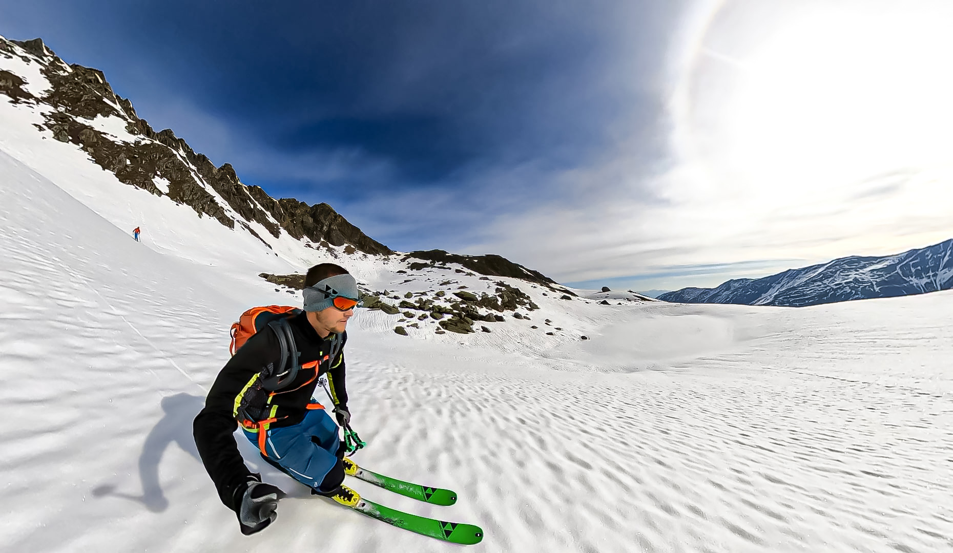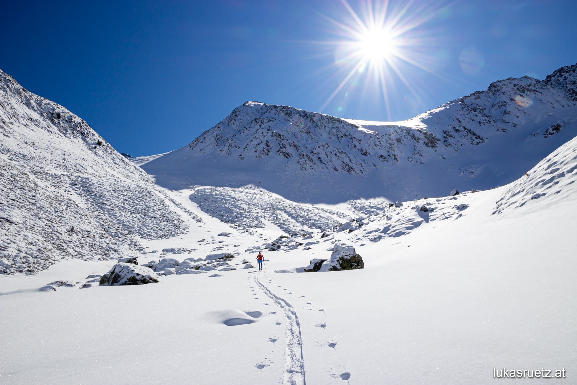At home at the beginning of December, there was 125 centimeters of fresh snow within two days. The ski touring conditions are therefore often ideal. From mid-December I will be skiing again without the splint. The last reminder of the „abnormality“ is history.
