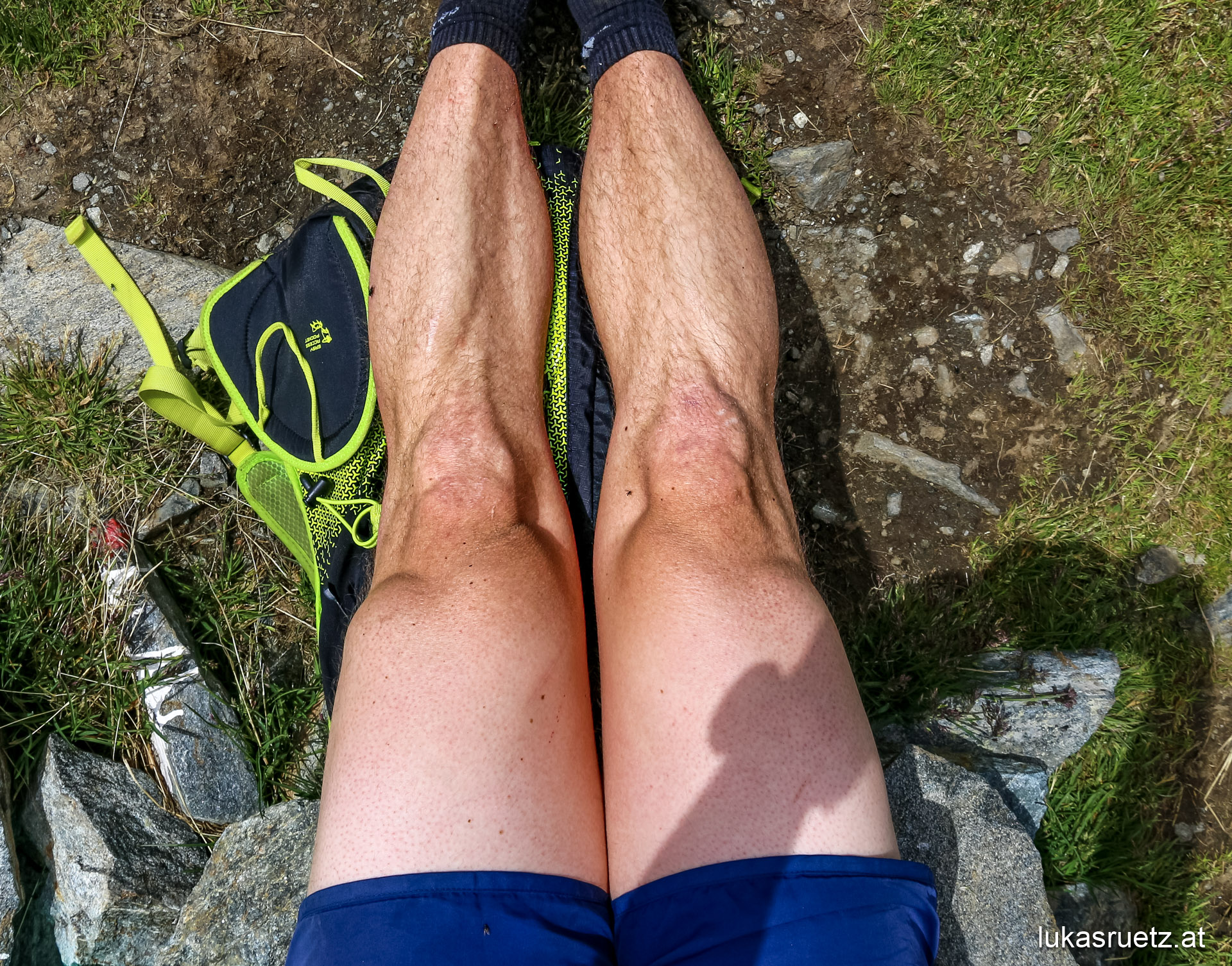 On July 7th I have to be in the clinic in the morning. The day before, I give myself the full grenade again: I run 1300 meters in altitude at full speed from the summit to the home to give the muscles a massive stimulus so that the strong breakdown only occurs a few days after the operation. At home my thighs are bluer than blue.