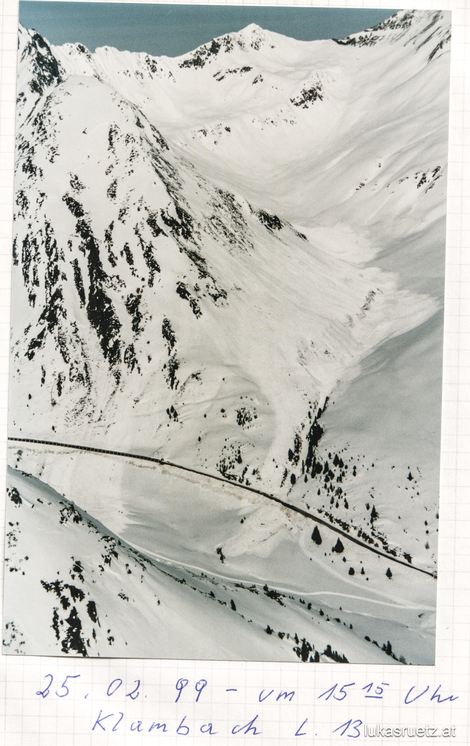 Einen Tag später, am 23.02.1999 kommen in Galtür im Paznauntal 31 und am 24.02. in Valzur sieben Menschen durch Lawinen ums Leben.