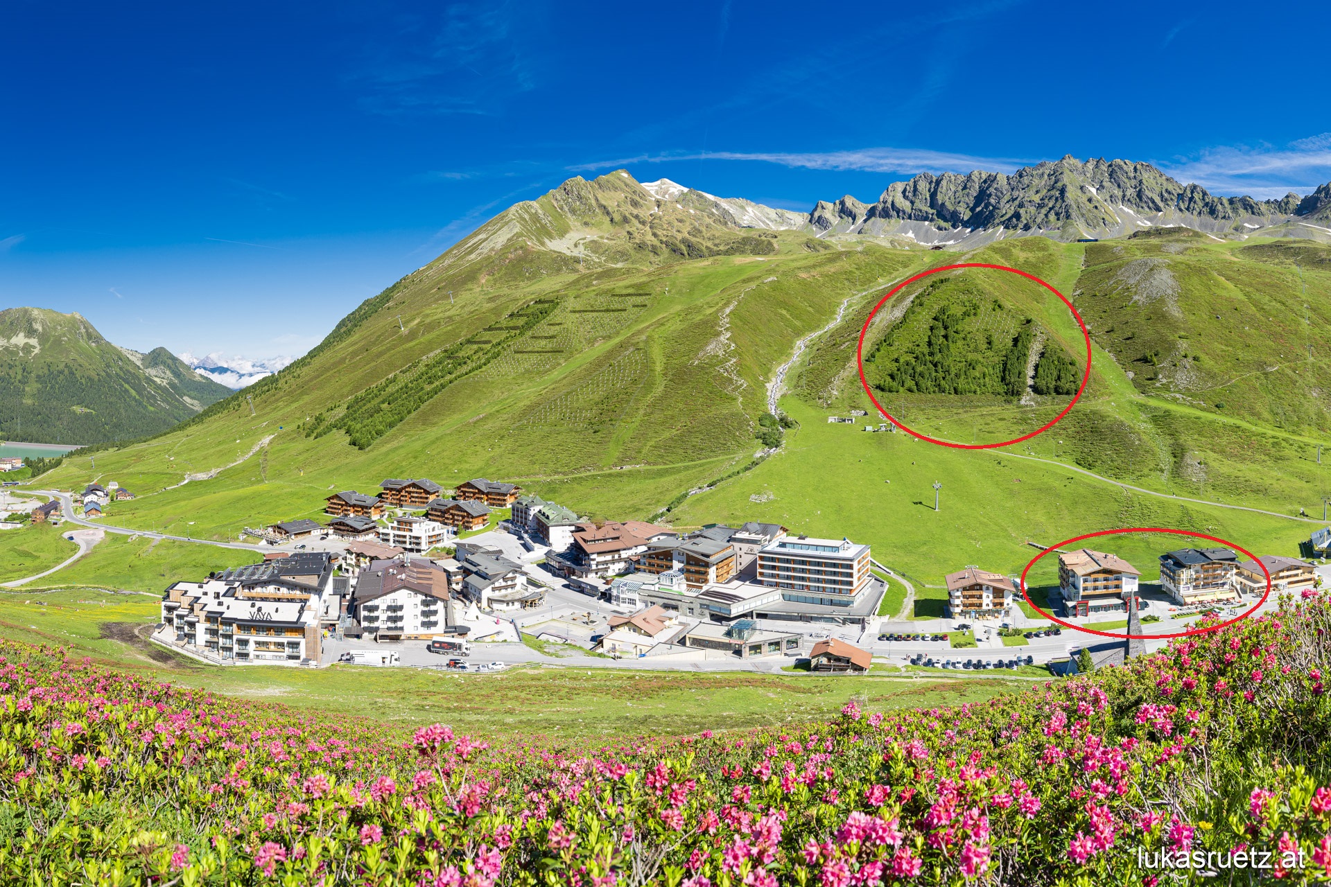 - In den 1970ern geht der „Kreuzlhang“ in Kühtai zwischen den beiden Kanonenrohren bis zum Hotel Seiler ab. Heute ist der Hang aufgeforstet.