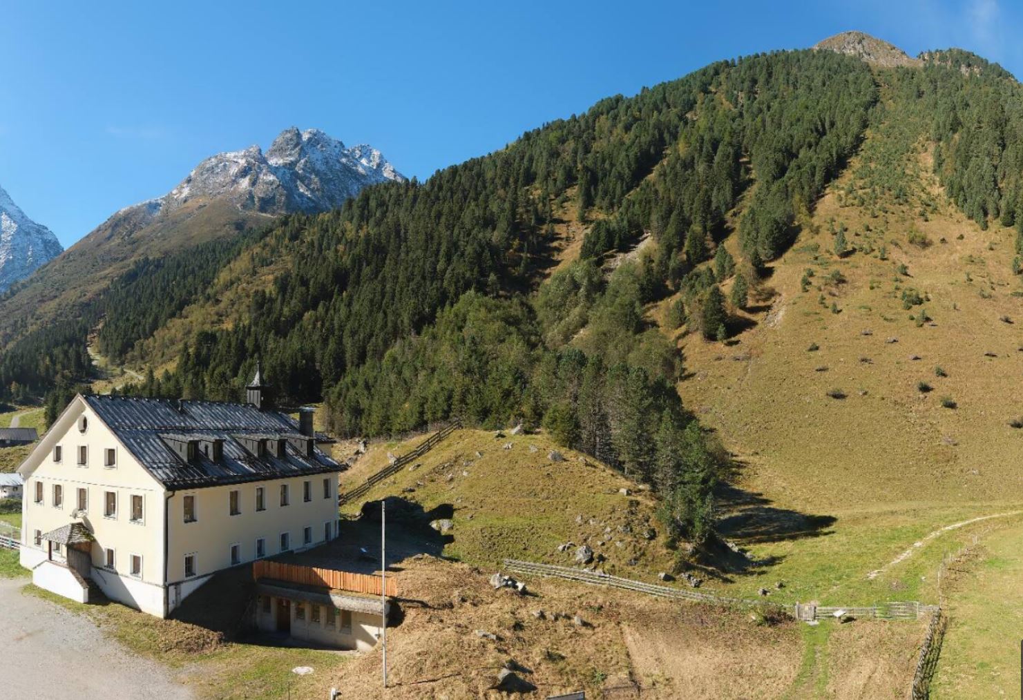 Im Gasthof steht dazu folgendes: „Da man das alte, von Abt Andreas i.J. 1633 erbaute Landhaus in Lüsens, welches infolge häufiger Überschwemmungen der Melach mit der Zeit baufällig geworden war, verlassen mußte, hat Abt Norbert II von Spergs diesen sicheren Platz ausgesucht, das Haus mit der Kapelle der hl. M. Magdalena aufgeführt, befestigt und eingerichtet, den Ansprüchen der Landwirtschaft und der Wohnung seiner hier wohnenden Stiftsherren angepasst, um so das Angenehme des Landlebens mit dem Nutzen der Almwirtschaft zu verbinden i.J.d.H. 1780.“